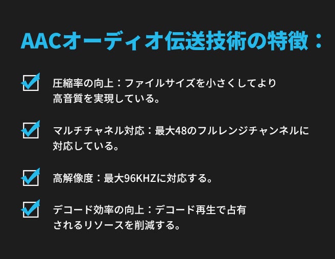 ・ 高度なAACオーディオ転送技術を採用し、高精細な音質を実現した。