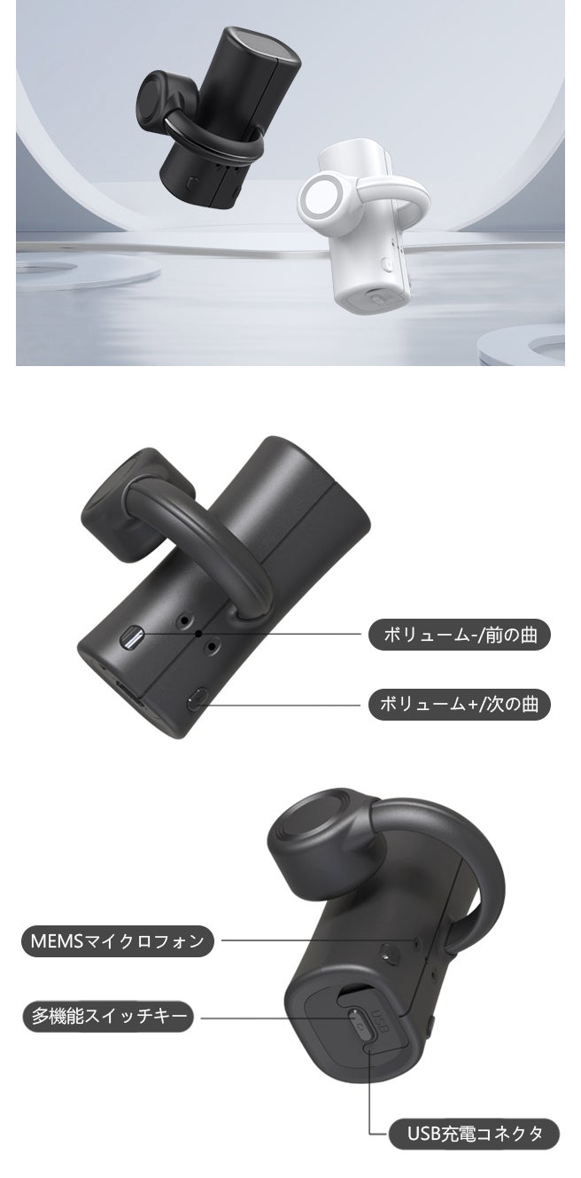 従来のイヤホンとは異なり、耳に塞ぐ必要のないグリップ装着方式イヤホンです。