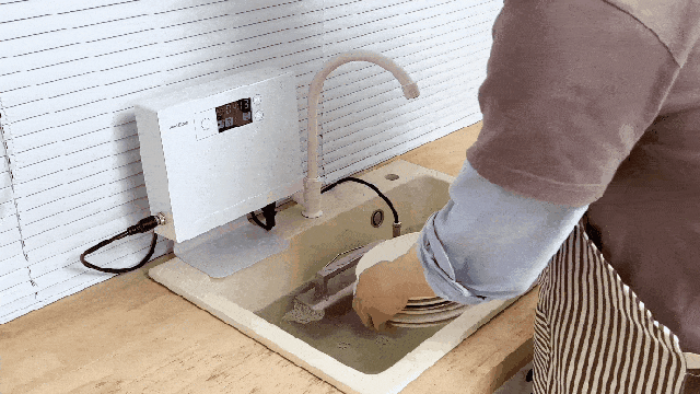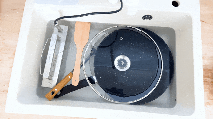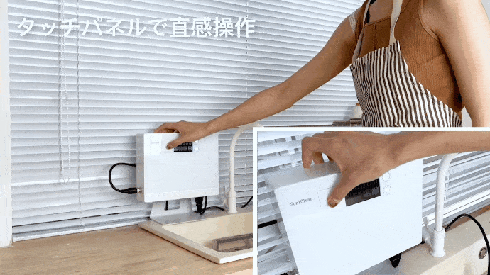 複雑な工事が一切不要!狭いキッチンコーナーにつけ置くだけで、最短5秒で頑固的な汚れをスッキリ落とす。