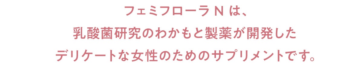私たちを含め多くの女性がデリケートなお悩みを抱えています。その原因は、ちゃんと自分に適した ケアが出来ていないからかもしれません。 フェミフローラ Nは、そんなお悩みに適した善玉菌を手軽に摂取し、体内に長く滞在させることで 女性のデリケートなお悩みをサポートします。