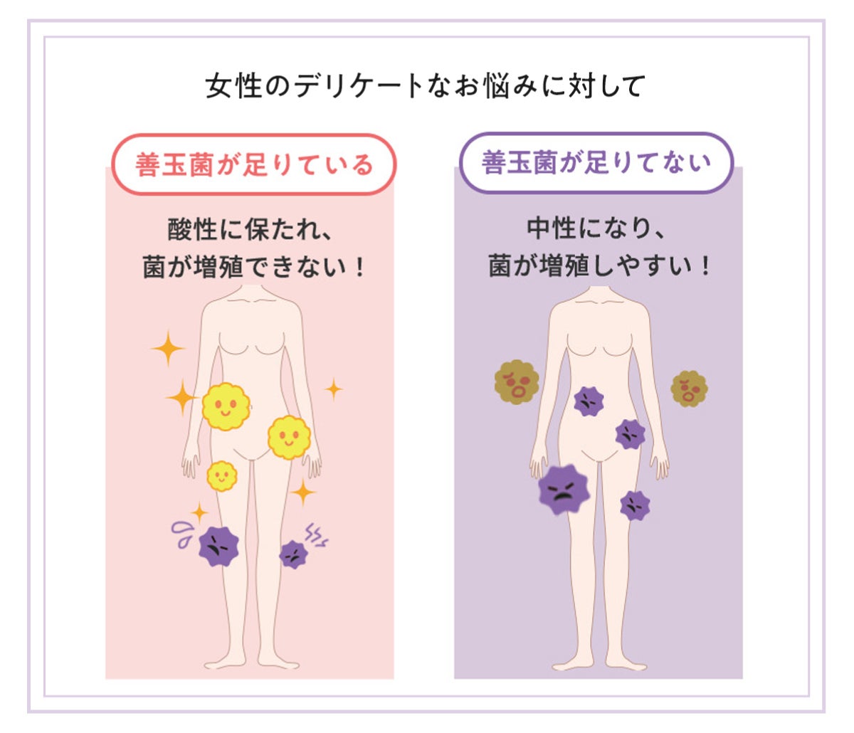 だからこそ、女性のデリケートなお悩みには、女性ならではの体内環境に着目した乳酸菌を摂ることが重要なのです。