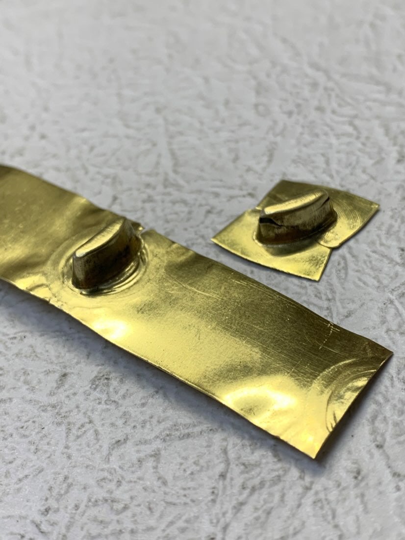 この、重そうな金型で真鍮板をプレスして、この後穴あけをしたりとかなりの工程を経て完成に近づいていきます。