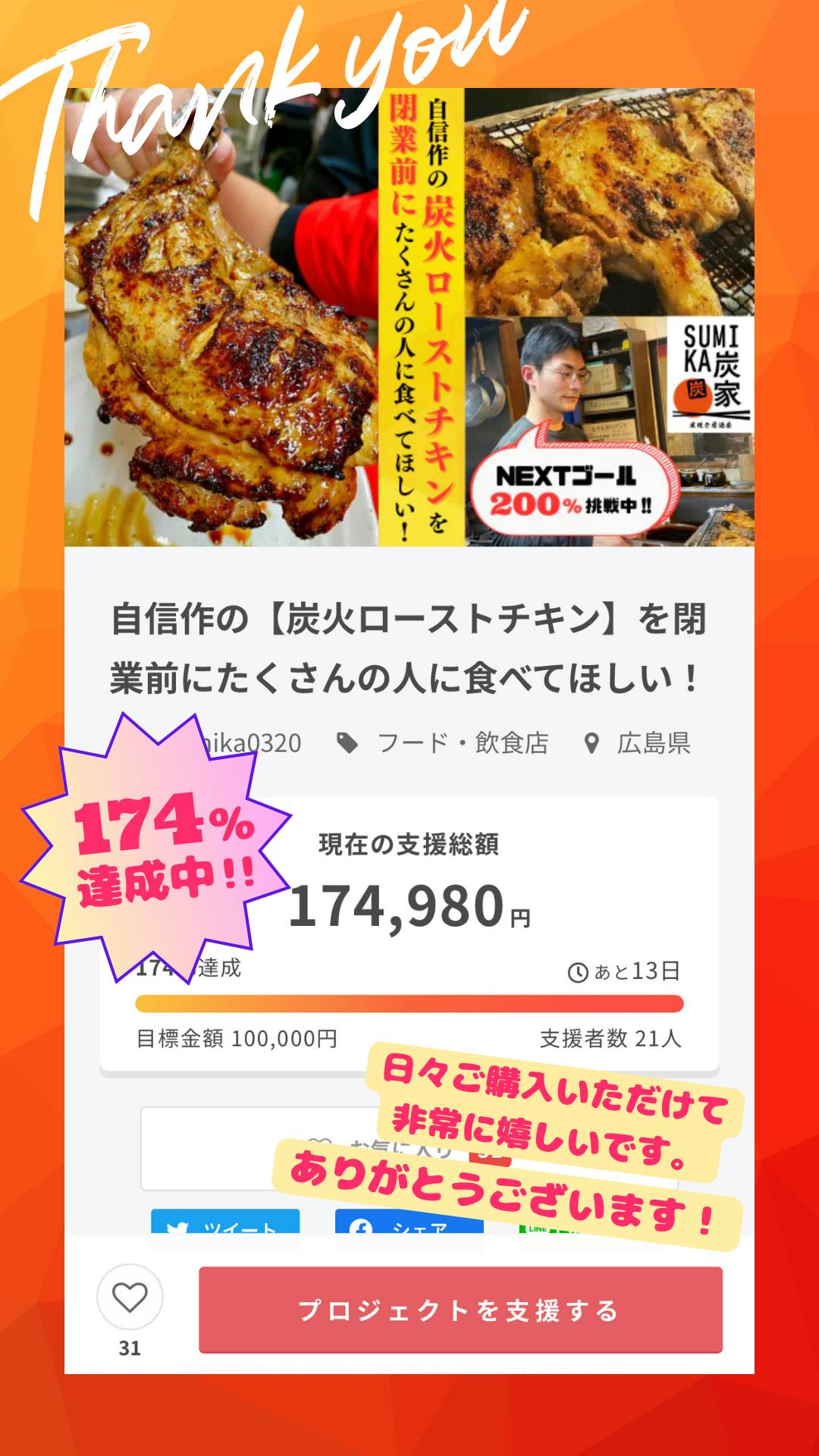 おかげさまで目標額174%を達成できております!本当にありがとうございますm(__)m