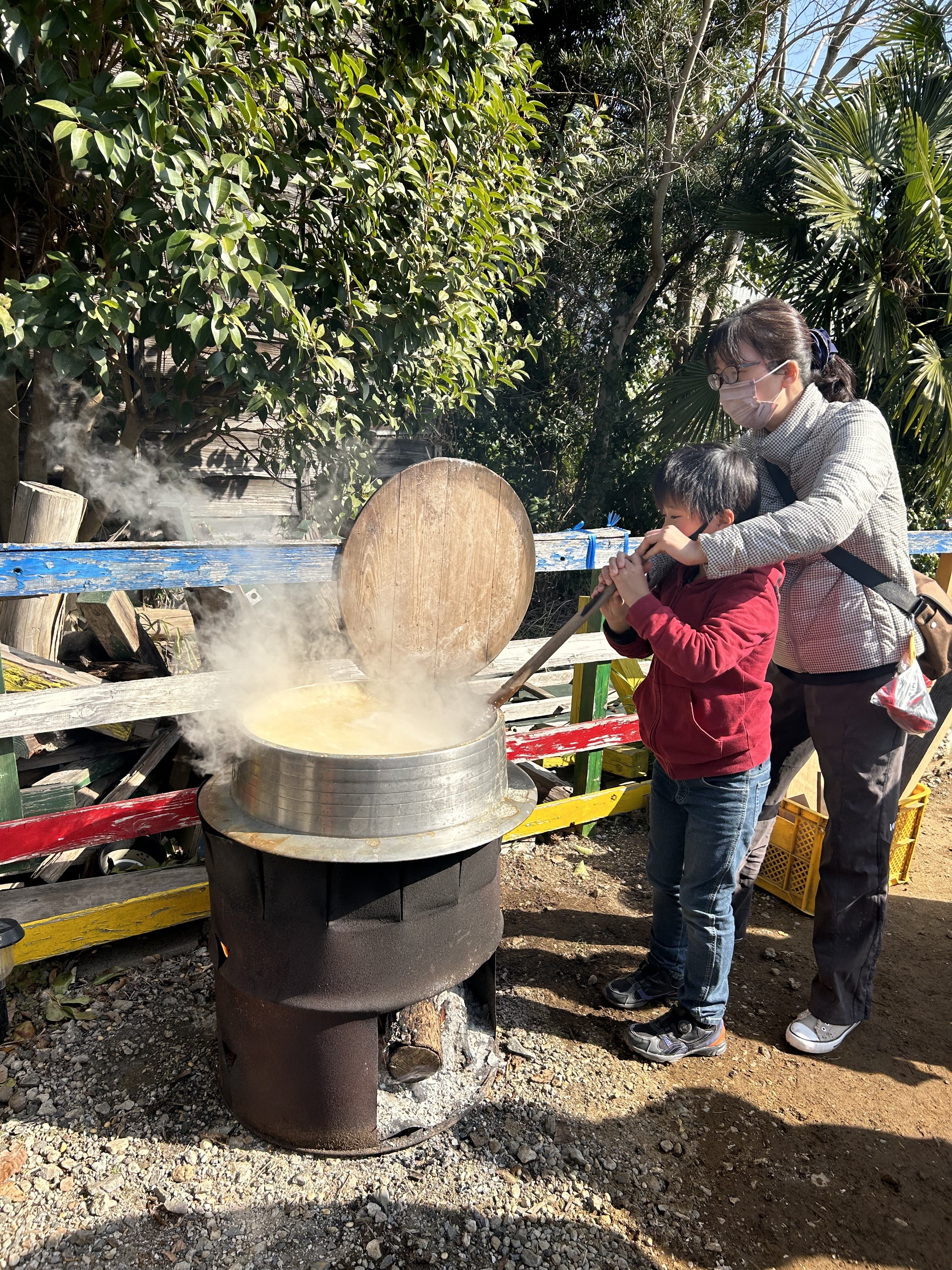 おやこで一緒にチカラを合わせて、鍋をぐるぐる。