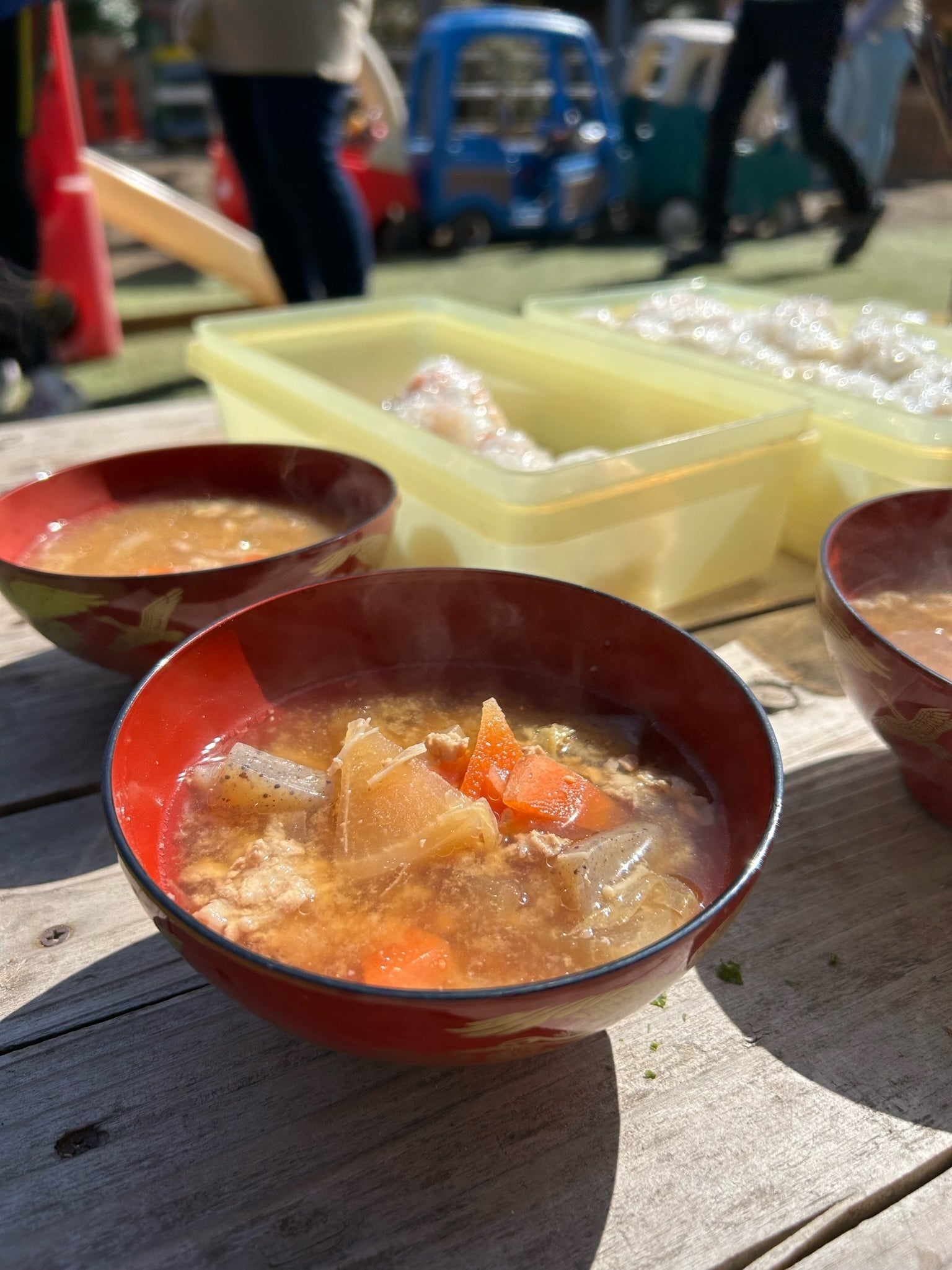 当日は塗装ワークショップに加えて、おにぎりや豚汁の試食会も行いました。