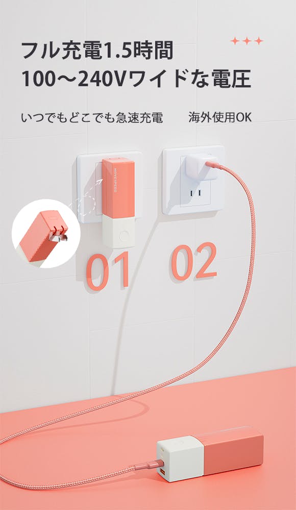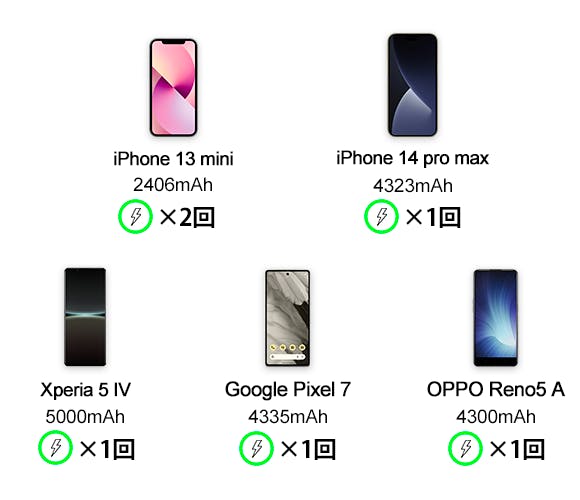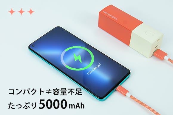 超コンパクトなボディですが、容量はたっぷり5000mAhで、スマートフォンを1回以上フル充電できます。1日中、デバイスのバッテリー切れの心配はありません。