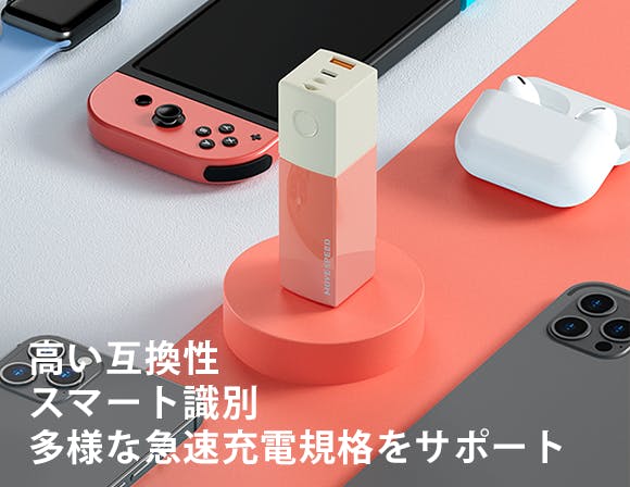 内蔵のスマート識別チップがデバイスに合わせて電流を調節することで、PDのほかApple、ファーウェイ、OPPOなど多様な急速充電規格に対応します。タブレットからBluetoothイヤホン、スマートウォッチなど小型デバイスまで充電可能です。