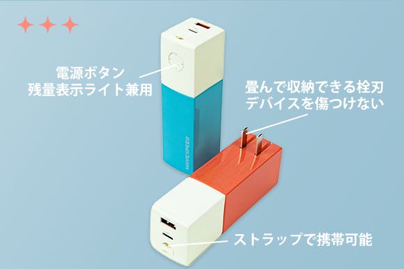 さらに、超コンパクトですので小さめのバッグにも楽々収納でき、持ち歩くのが楽しくなるモバイルバッテリーなのです!