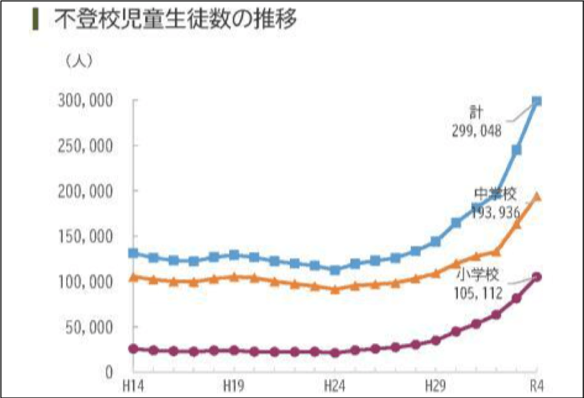 また、2023年10月4日に文部科学省が発表した調査によると、小中学校における不登校児童生徒数は前年度比22.1%増の29万9,048人となり、過去最多を記録。また高等学校における不登校生徒数は、前年度比18.8%の6万575人という結果になっています。