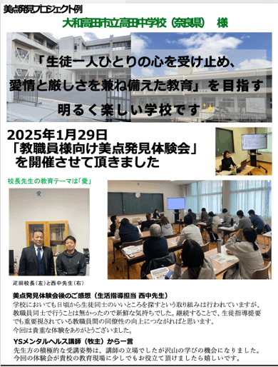 おかげさまで、少しずつではありますが、美点発見を実践したいという学校が増えて来ておりまます。