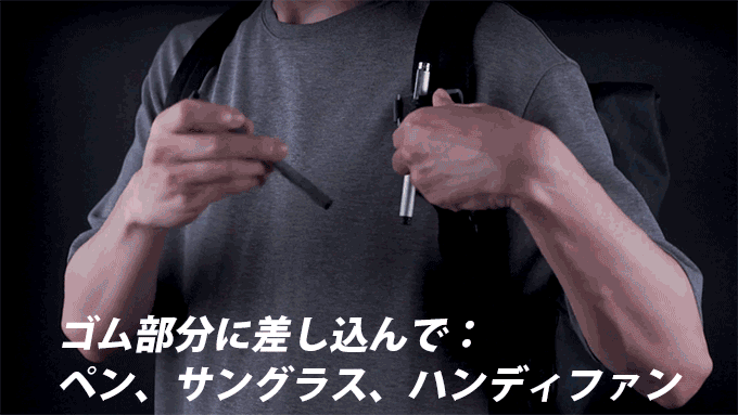 バックパックのベルトに付ければ、一瞬で収納できる小物ホルダーに!