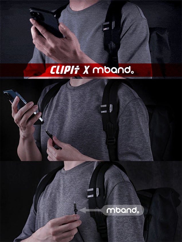 MBAND(マグネット付きのコードホルダー)を使用すると、スマホ充電器やイヤホンなど有線のものをCLIPITに装着可能です!