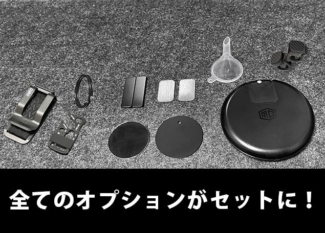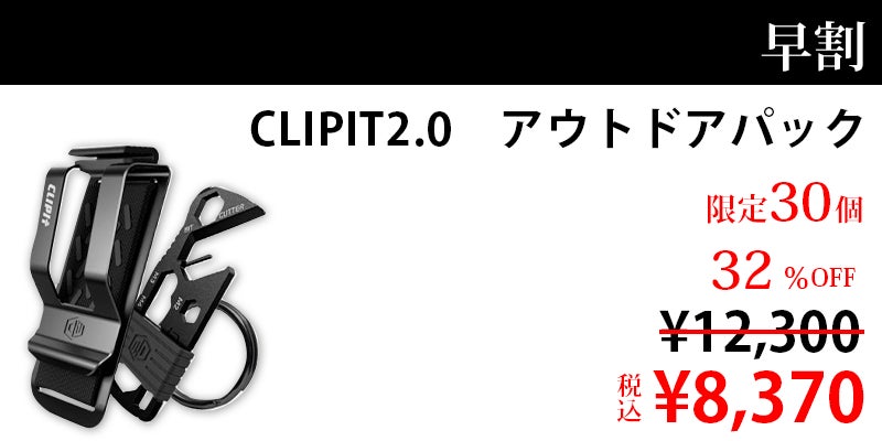 A、シングルパックとして、CLIPITでもご購入いただけます。シングルパックの他、マグネットで手持ちの小物を吸着できる「スマートパックCLIPIT+magnet kit」、マルチツールが付いた「アウトドアパックCLIPIT+multi tool MDT001」、全てのオプションが含まれる「ALL in one」の3つのセットをご用意しています。