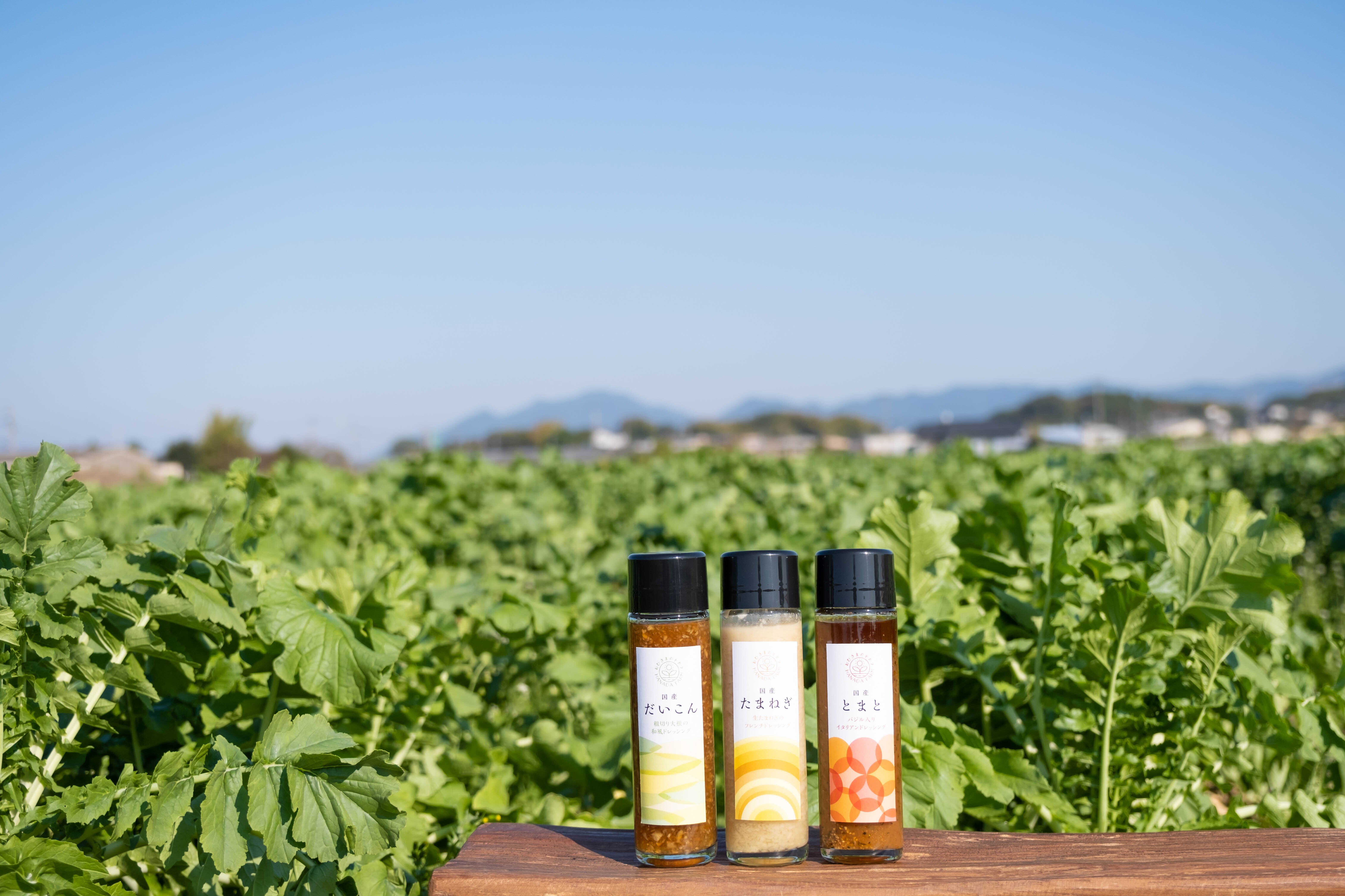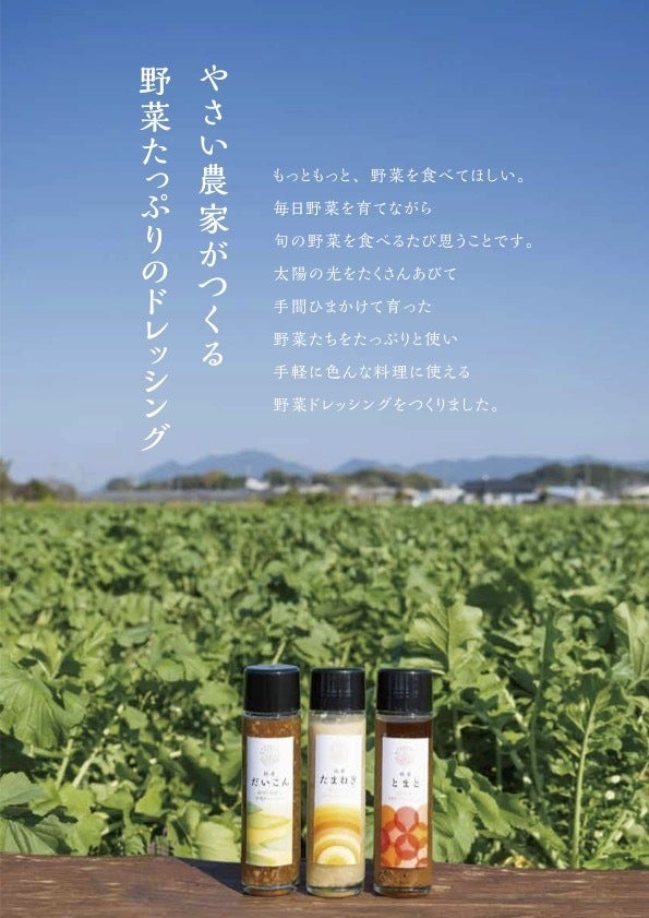 最高のドレッシングを作るために、自分たちの畑で365日愛情を注いで育てた野菜を使い、加工まで一貫して行うことでしか生まれない、 細部までこだわり抜かれたドレッシングです。