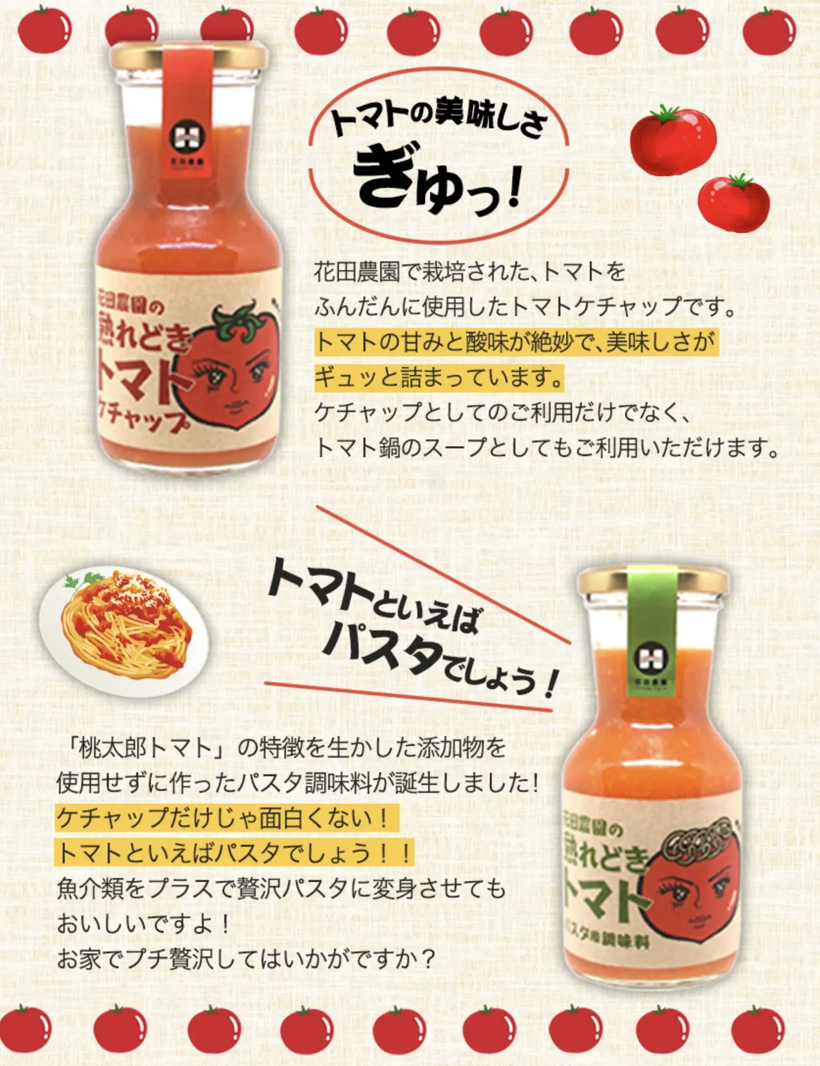 中でも人気の「花田農園の熟れどきトマトケチャップ」は