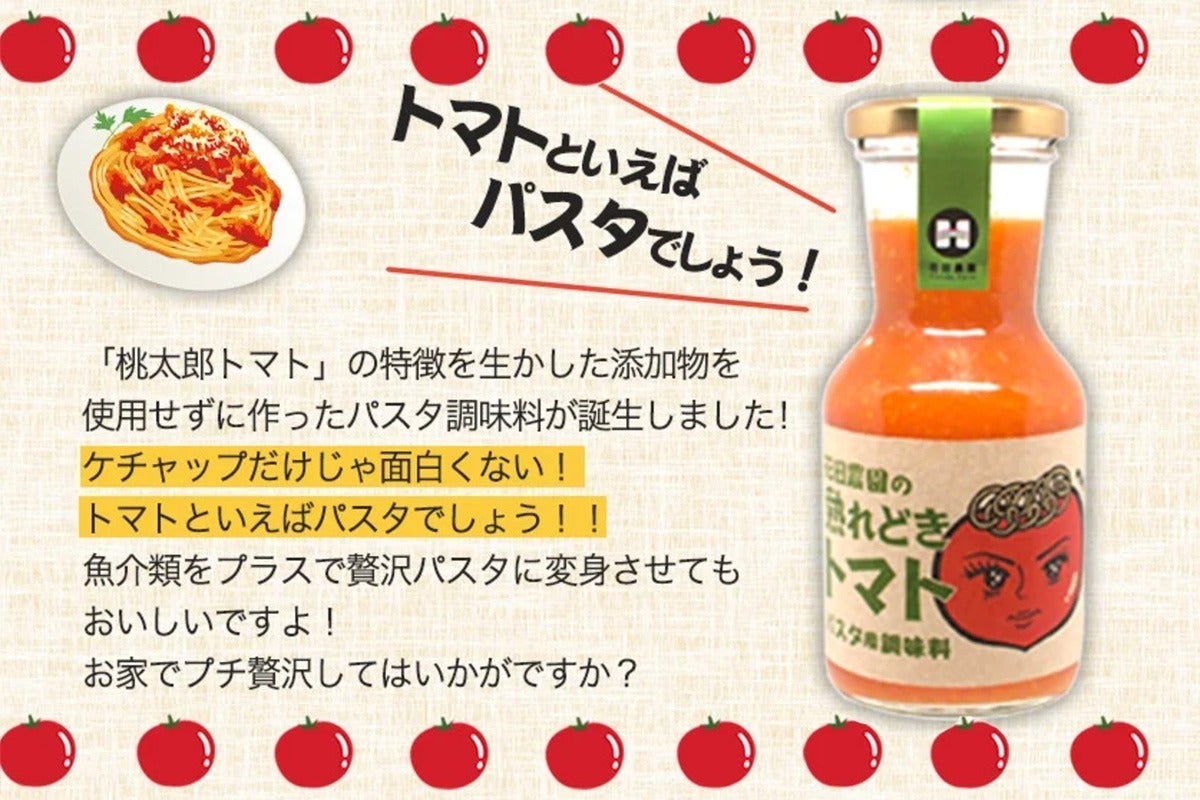 濃桃色の大玉で生食用の完熟トマト品種「桃太郎」をふんだんに使っています。