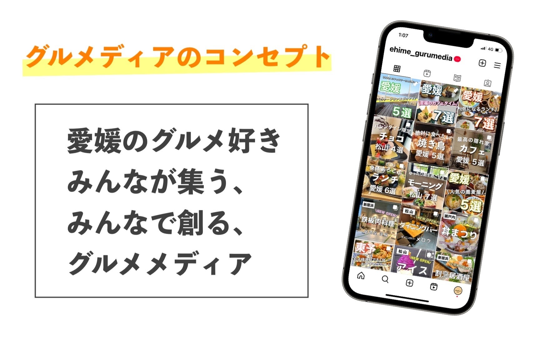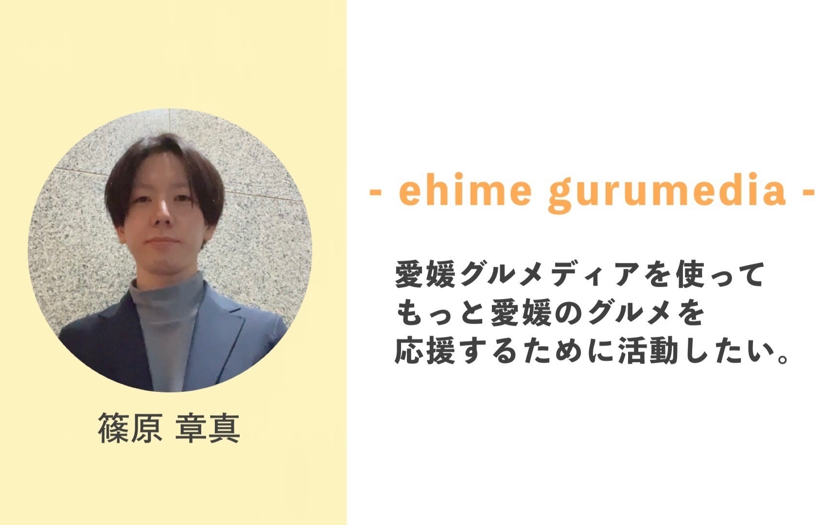 『愛媛のグルメ好きみんなが集う・みんなで創る』をコンセプトにした、愛媛グルメディアインスタグラムを運営している篠原章真と申します。