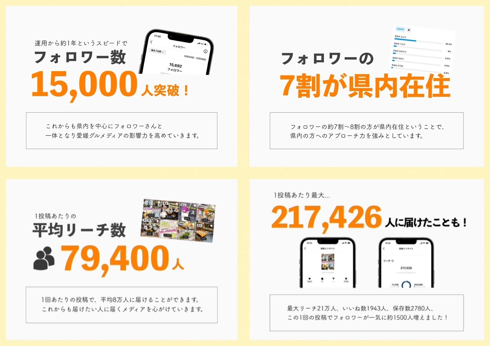 2023年2月現在、愛媛のグルメに特化したアカウントの中では、フォロワーの伸び率、閲覧数、宣伝効果(費用対効果)含めてトップだと思っています。
