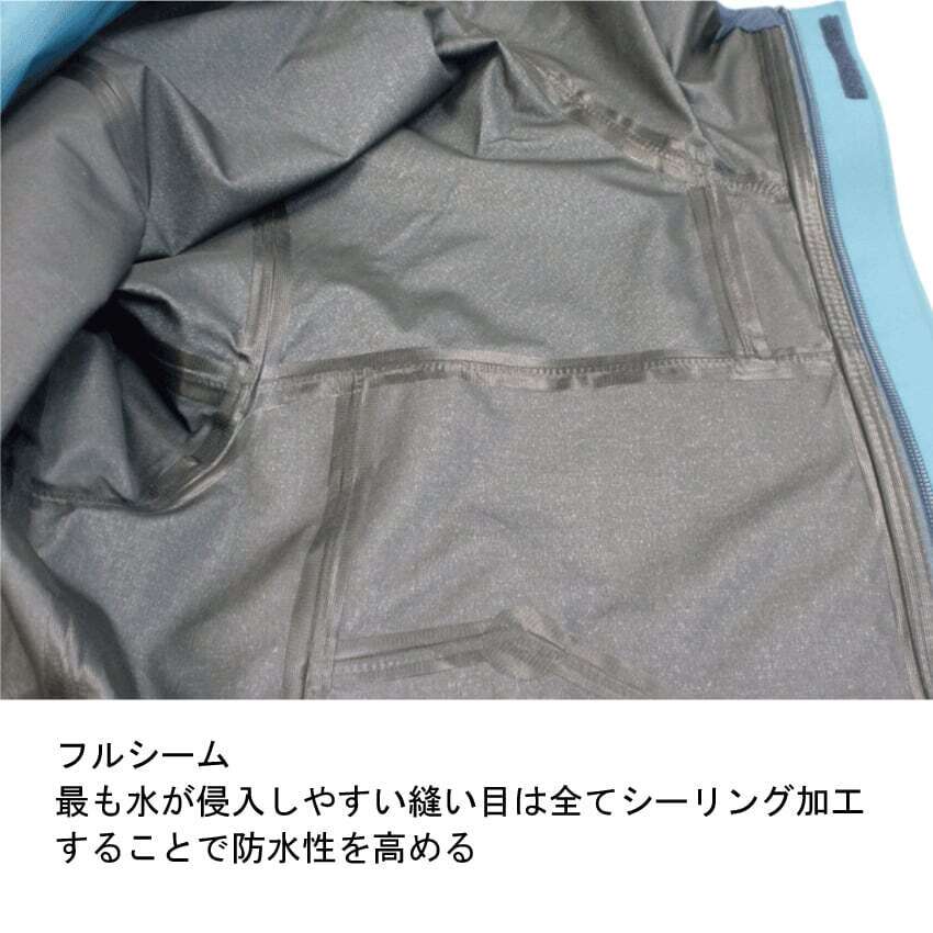 3. 撥水性もばっちりなフルシームレインジャケット。フード・ポケット付き。3層構造だから風も通しません。