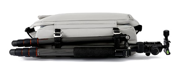 下部のストラップは単なる装飾ではなく、撮影用三脚や自転車のロック、脱いだ服などを掛けることができます。