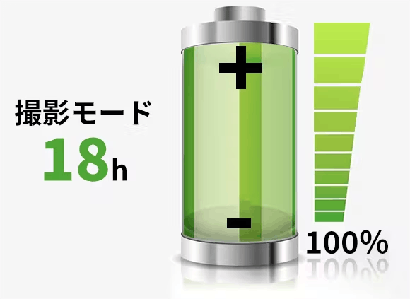 ・ホームセキュリティ:18時間稼働可能で長時間定点録画に活用できます。自宅の窓際やテーブル、ドアなどに置くだけで防犯カメラとしても大活躍。