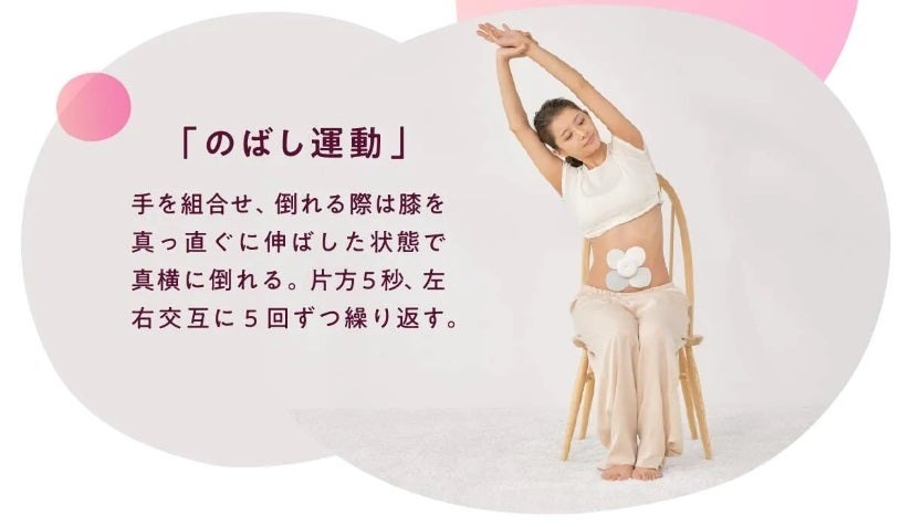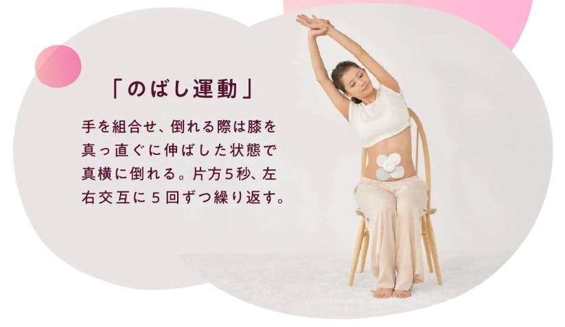 chomomiはお腹に装着するだけで腸を刺激するガジェットですが、簡単なストレッチを組み合わせることでより効果的に活用いただけます。