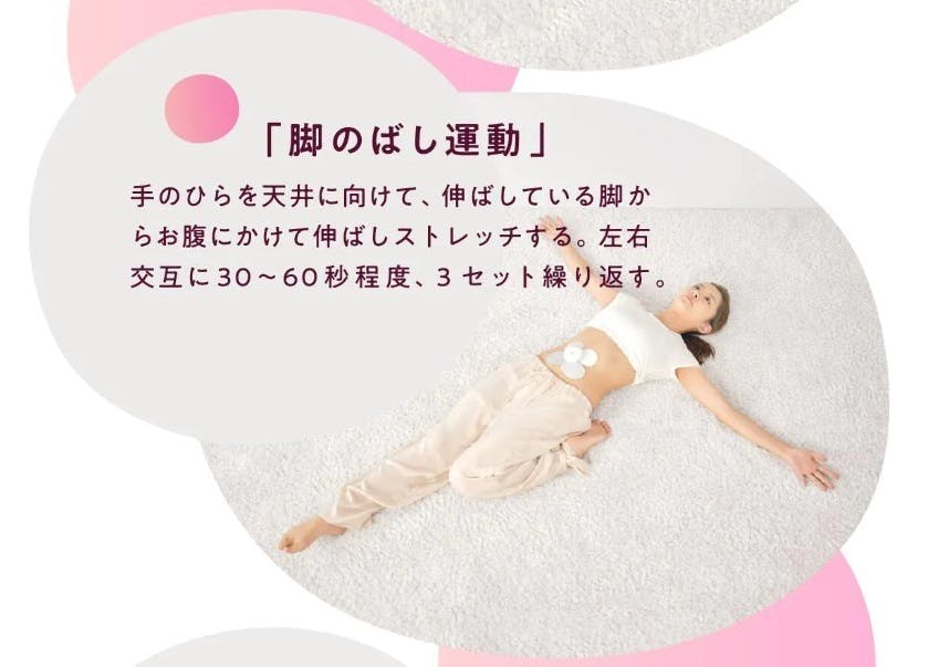 chomomiはお腹に装着するだけで腸を刺激するガジェットですが、簡単なストレッチを組み合わせることでより効果的に活用いただけます。