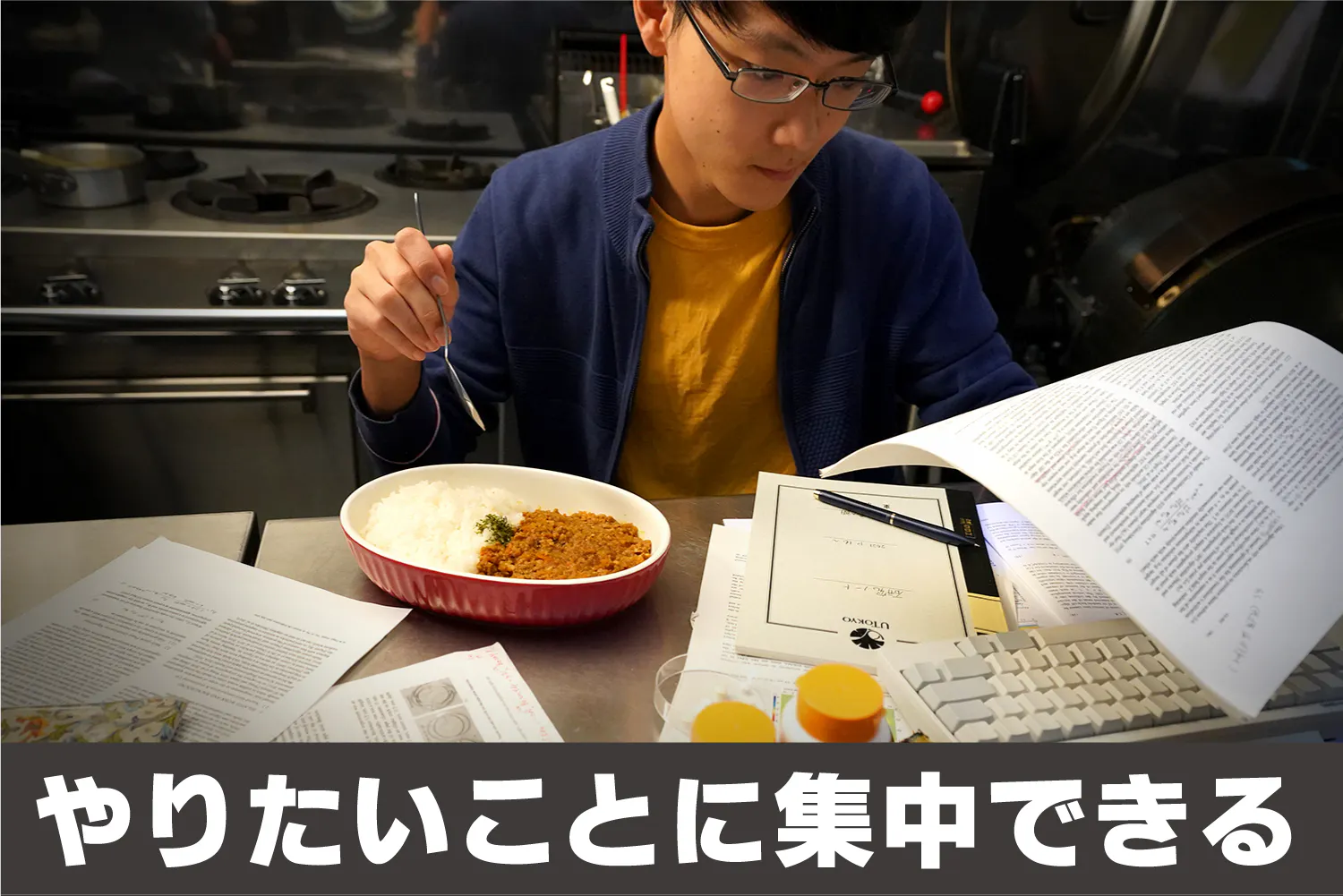 栄養価だけでみれば1日2食でいいので1食分選ぶ時間も脳の負荷もかからず、更には食べるという行為に使う時間も集中したいことに使うことができるようになります。