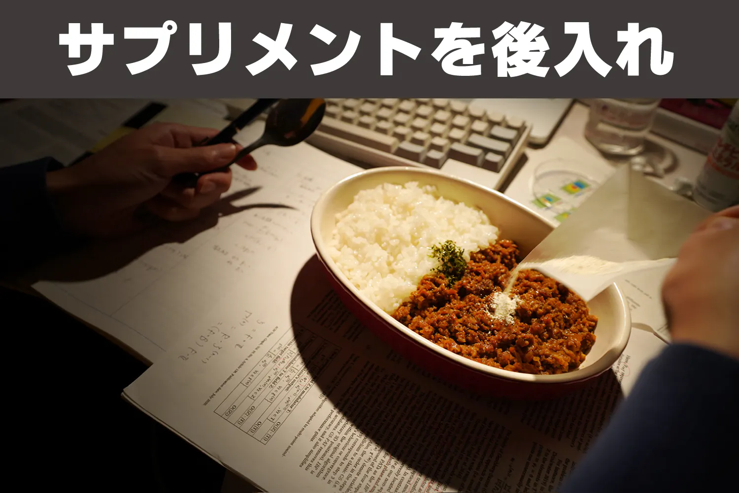なんとか東大カレーだけで完璧な完全栄養食にしたかったので食材だけで考えていたのですがなかなか完成せず、様々考えた結果東大カレーを完璧な完全栄養食にするためだけのサプリメントを開発することにしました。