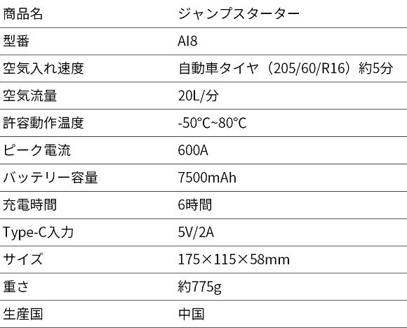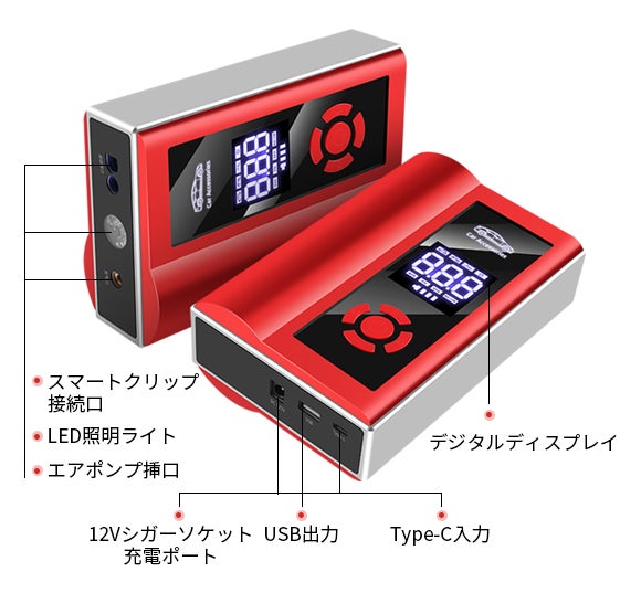 「AI8」はバッテリー残量が少なくてエンジンが始動できない場合、迅速に電源を供給し、突然のバッテリー上がり問題を解決できる多機能ジャンプスターターです。さらに、電動エアポンプの機能も備えており、LEDデジタルディスプレイ搭載でタイヤ空気圧の状態も一目瞭然!
