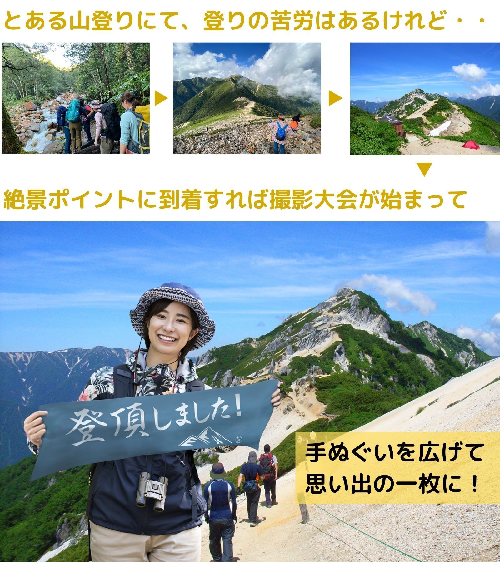 などなど、山好きなら誰もが抱いたことがあるような思いを、このメッセージ手ぬぐいを掲げて記念撮影して、発信してみませんか。