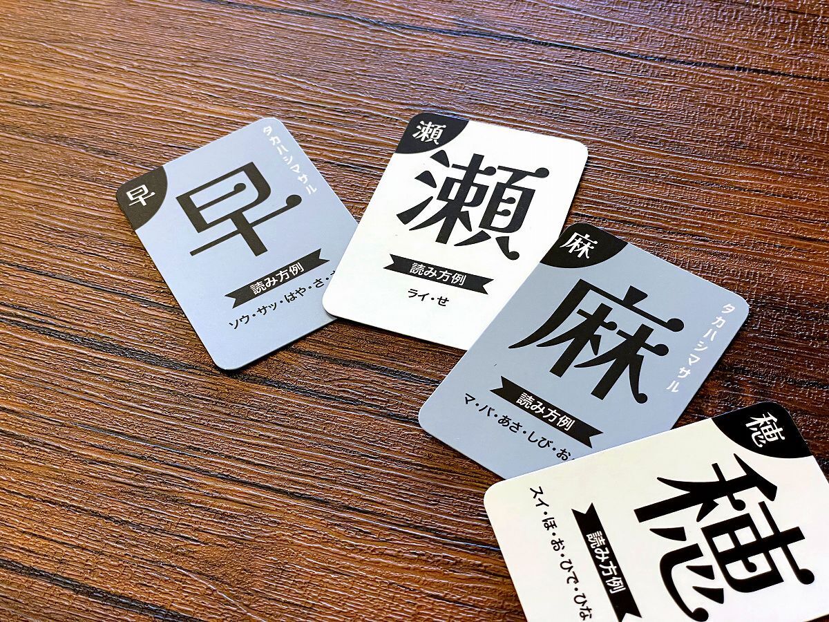 対象年齢10歳以上、プレイ人数を3人以上と設定していますが、名前カードには「読み方」を記していますので、基本ルールができるお子様でしたら問題なく遊んでいただけます。