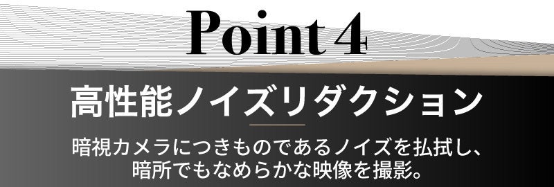 NIRは近赤外領域のことで、この機能は暗所に対して近赤外光を照射し映し出すことで映像化しています。高度なNIR機能によりノイズの低減が実現できています。