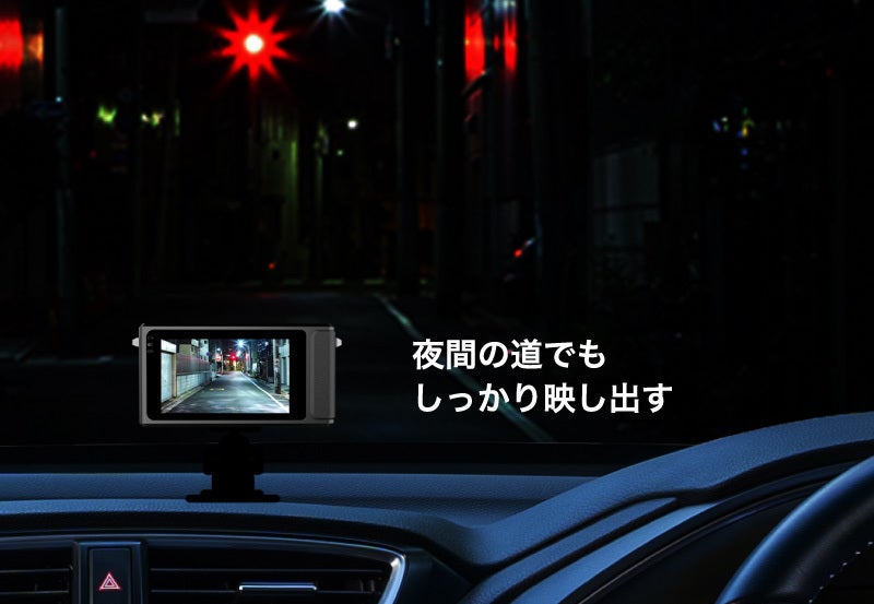 街灯の無いような暗い道でも、わずかな光を捉えはっきりと映し出します。夜間のドライブレコーダーとして、また、見えにくい道の視界の補助役としてもあなたをサポートします。