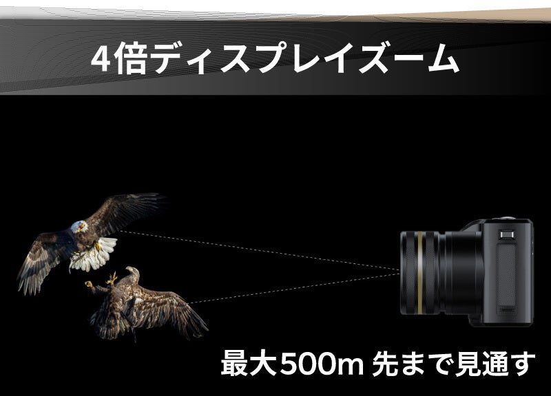 4倍のデイスプレイズームで最大500m先にあるものまで鮮明に確認できます。