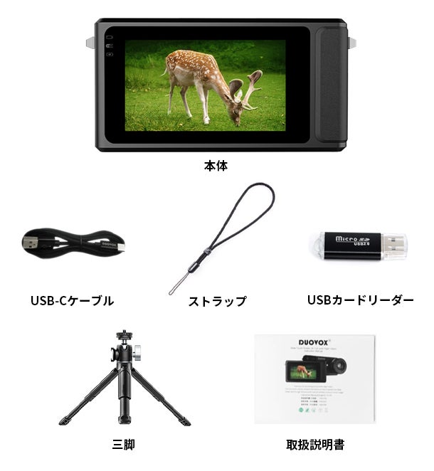 付属品:Type-Cケーブル、ストラップ、三脚、USBカードリーダー、取扱説明書