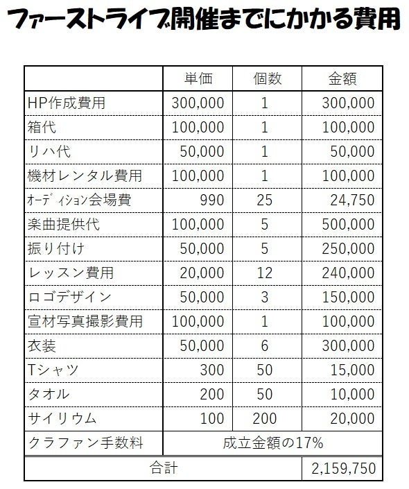*不足金額に関しては実行委員会全員でアルバイトでもして捻出するつもりです。