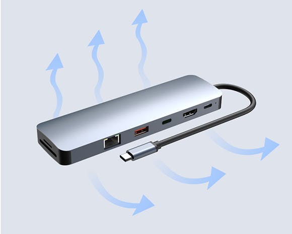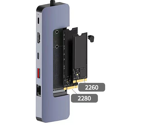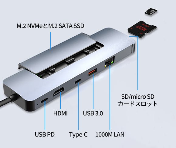 「V01」はSSDケースの機能を搭載した、PC容量・ポート不足を解決し、様々なシーンで活躍できる8 in 1多機能高速USB Type-C拡張ハブです。