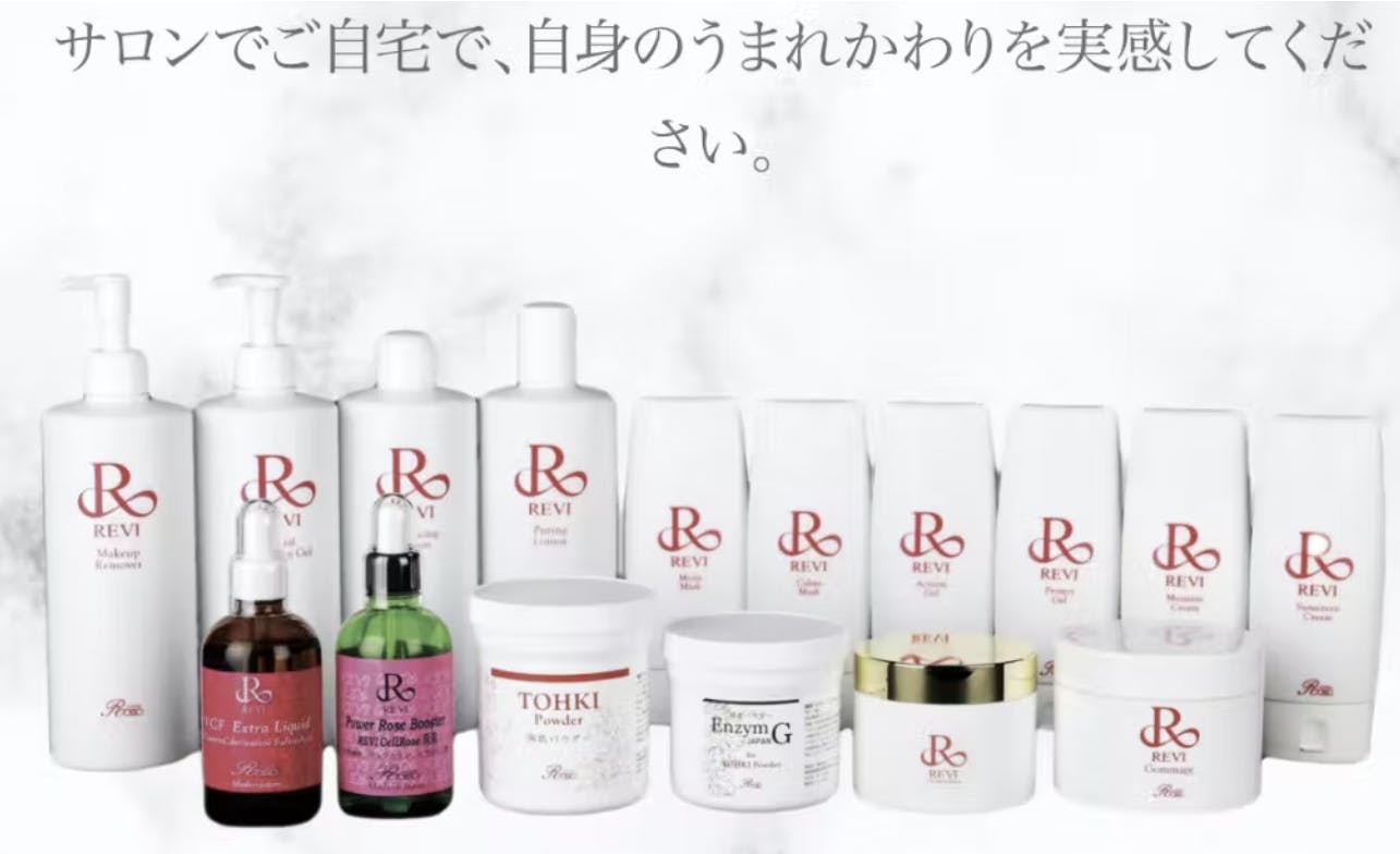 ※化粧品の取り扱い・販売については、REVI化粧品様の許可を得て行っています。
