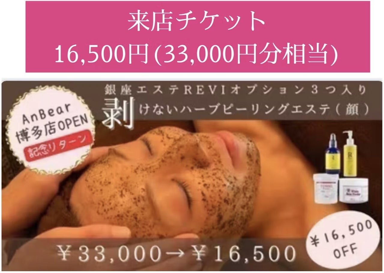 ■銀座エステREVI3つ入り剥けないハーブピーリングエステチケット(フェイシャル) ¥33,000→¥16,500