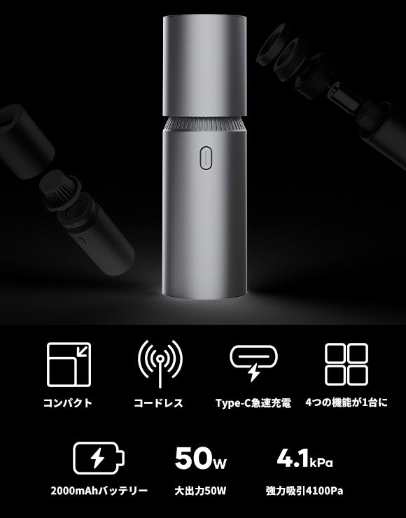 吸込仕事率4100Paの圧倒的な吸引力で、ほこりや髪の毛、大小のごみを残さず吸い込みます。小回りが利きますので、車内の掃除にぴったりです。