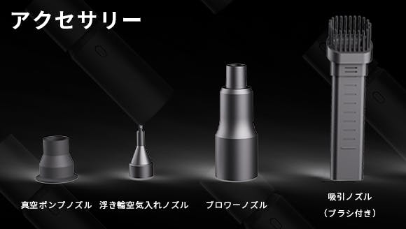 掃除機、ブロワー、真空ポンプ、空気入れの4つの機能がひとつになったV06は、様々な場所で大活躍する1台です。