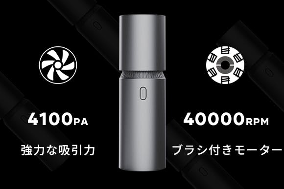 V06は1分間に40000回転するブラシレスモーターを搭載し、吸込仕事率は41000Paに達します。モーター最大出力は50Wで、掃除機の届きにくい場所のごみもすっきり吸引。車内の掃除も容易です。