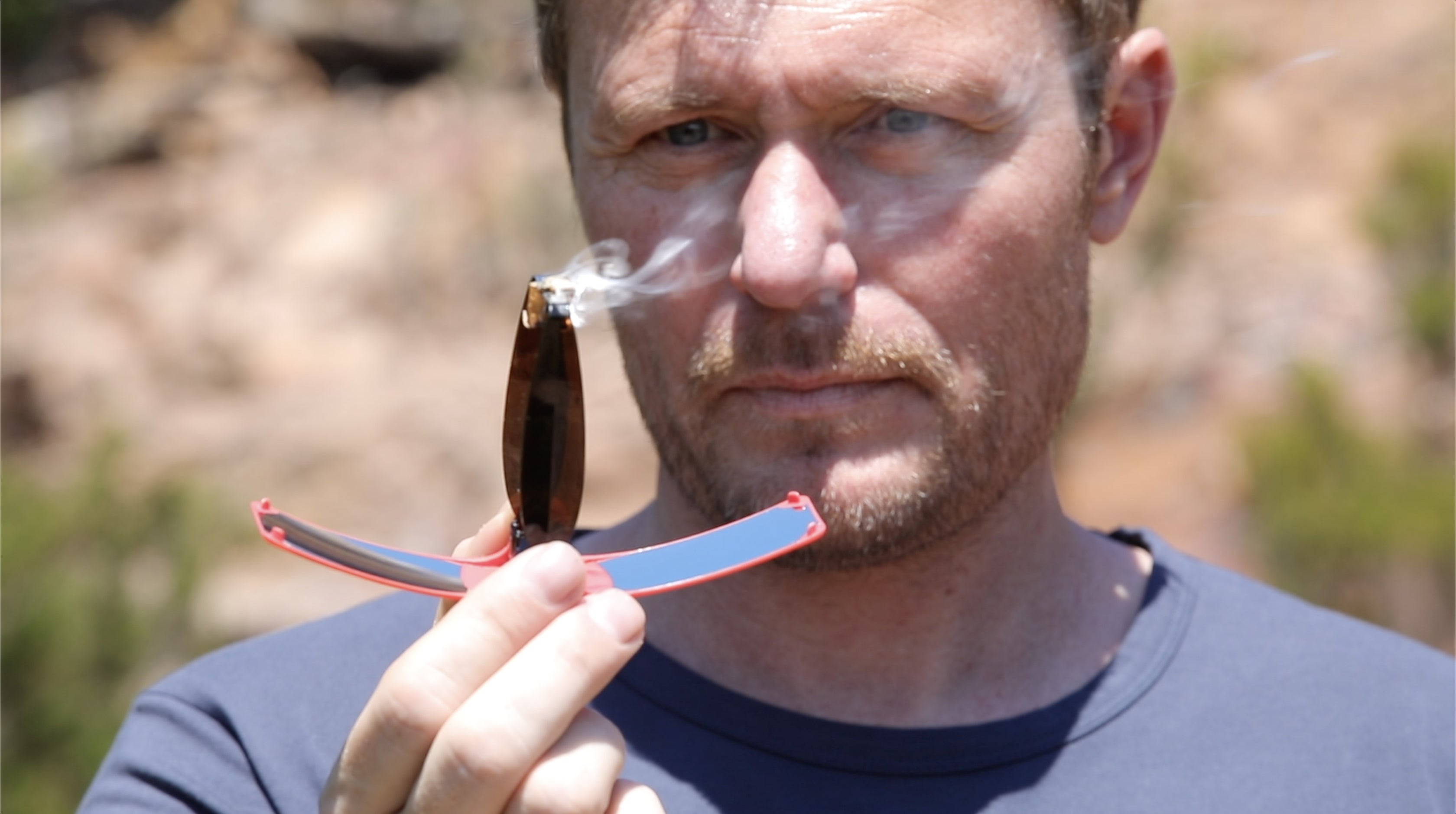 ④側面:サングラスと同じ素材に変え、反射による目への負担を軽減できるようになっています。⑤パッケージ内には説明書と共にテスト用のクラフトペーパーも付属してあります。