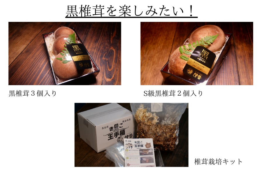 お届けするリターン品として、黒椎茸をはじめ、レンチナス奥羽伊勢が責任を持って栽培してくれる菌床オーナー権や八峰町が誇る海の幸とのセットなど魅力溢れるセットをご用意しております。こだわりの黒椎茸をぜひ味わってみてください!