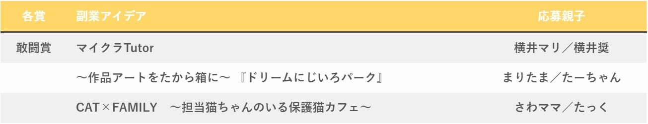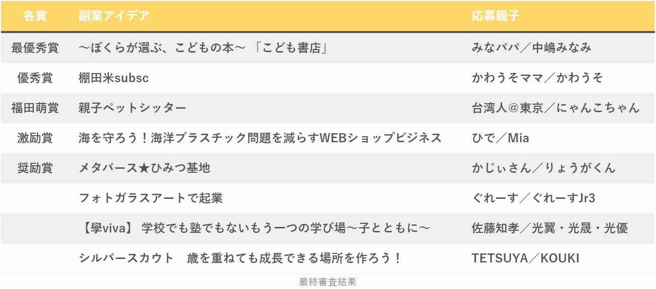 各賞を受賞された親子の皆さま、おめでとうございました!