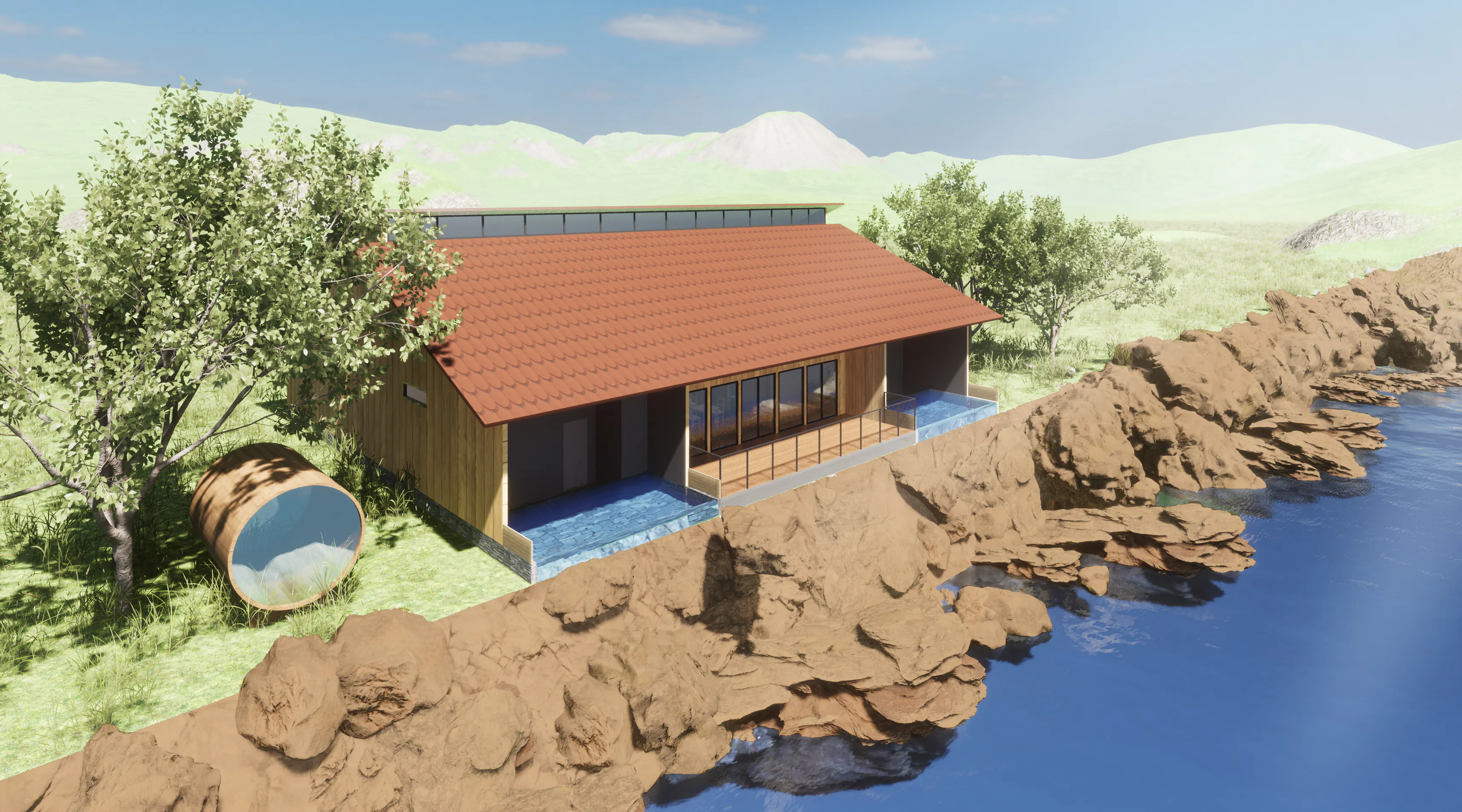 2023/05/23 21:25露天風呂の全体像について絵を描いてもらいました。色味は変更するから知れませんが、おおよそこんな感じで作っていきます。その他、露天風呂とを実際の写真と合わせたのは以下のような感じになります。あとカフェについては、白を基調として植物が多く並んだものとなりました。完成したら多くの人に来てもらいたいなーと思っています。 もっと見る