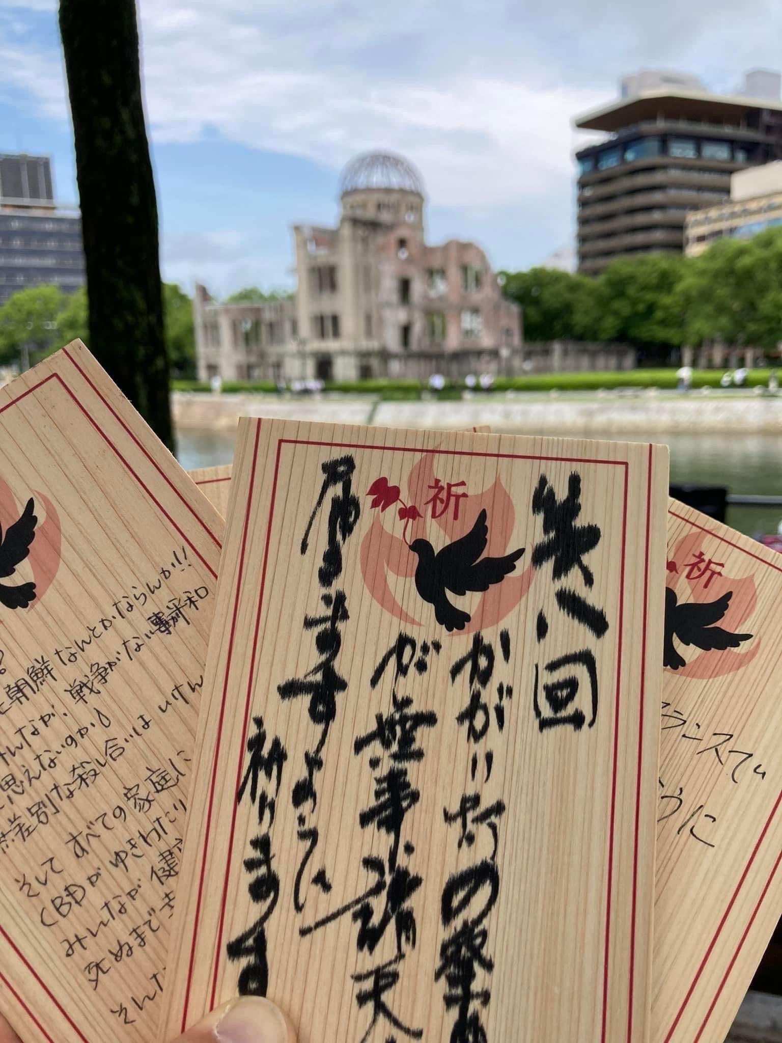 2023/08/06 21:03原爆ドーム正面の元安川に5基の筏に24灯のかがり灯が灯されました。翌朝の新聞5社1面に「かがり灯」の写真が掲載されていました。(中国新聞)(毎日新聞)(朝日新聞)(産経新聞)(読売新聞)クラウドファンディングご支援くださった「願い札」や「平和のはがき」をかがり灯の中に入れお焚き上げさせていただきました。お焚き上げしているかがり灯です。ボートに乗った点火係が順次火を入れていきます。川岸にも1灯のかがり灯が設置してあり、後から届く願い札などはここでお焚き上げ致します。無事、平和の祈りの祭典が執り行われましたこと、ご報告と共に、ご支援ご協力くださった方に心より感謝申し上げます。ありがとうございました。 もっと見る「ひろしまかがり灯の祭典」の記者会見がありました!