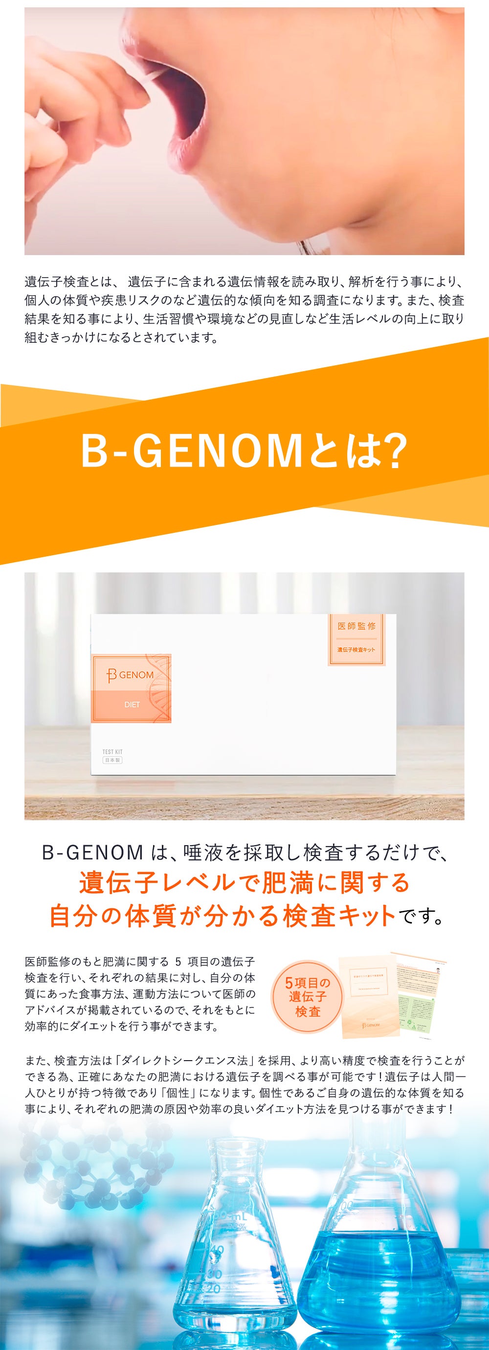 その一環として「B-GENOM 遺伝子検査キット」を作成しました。