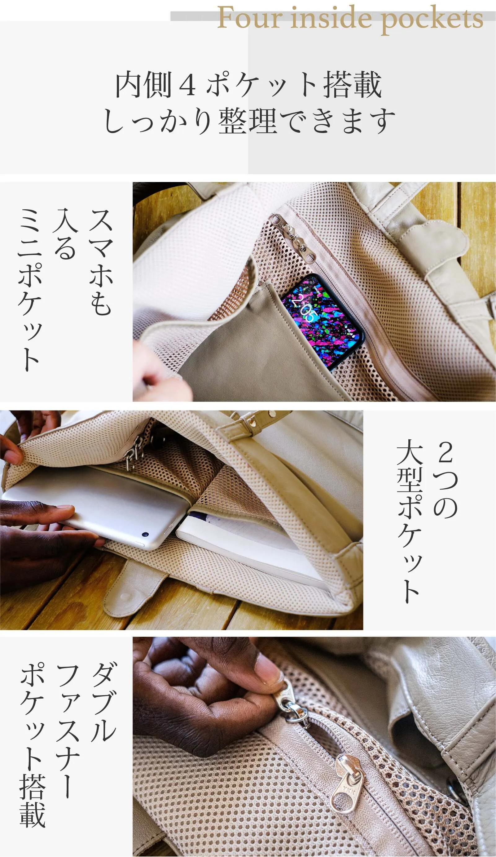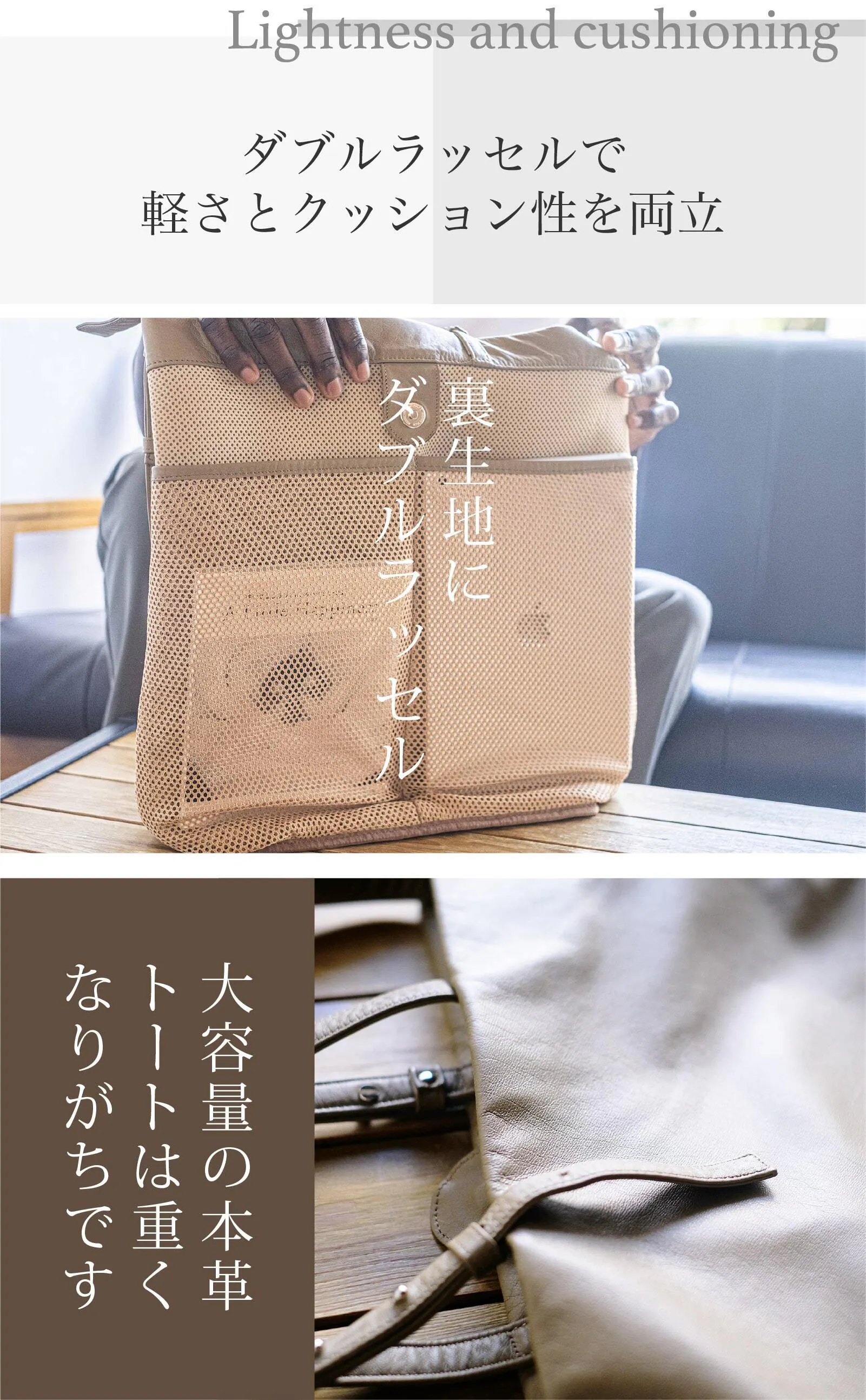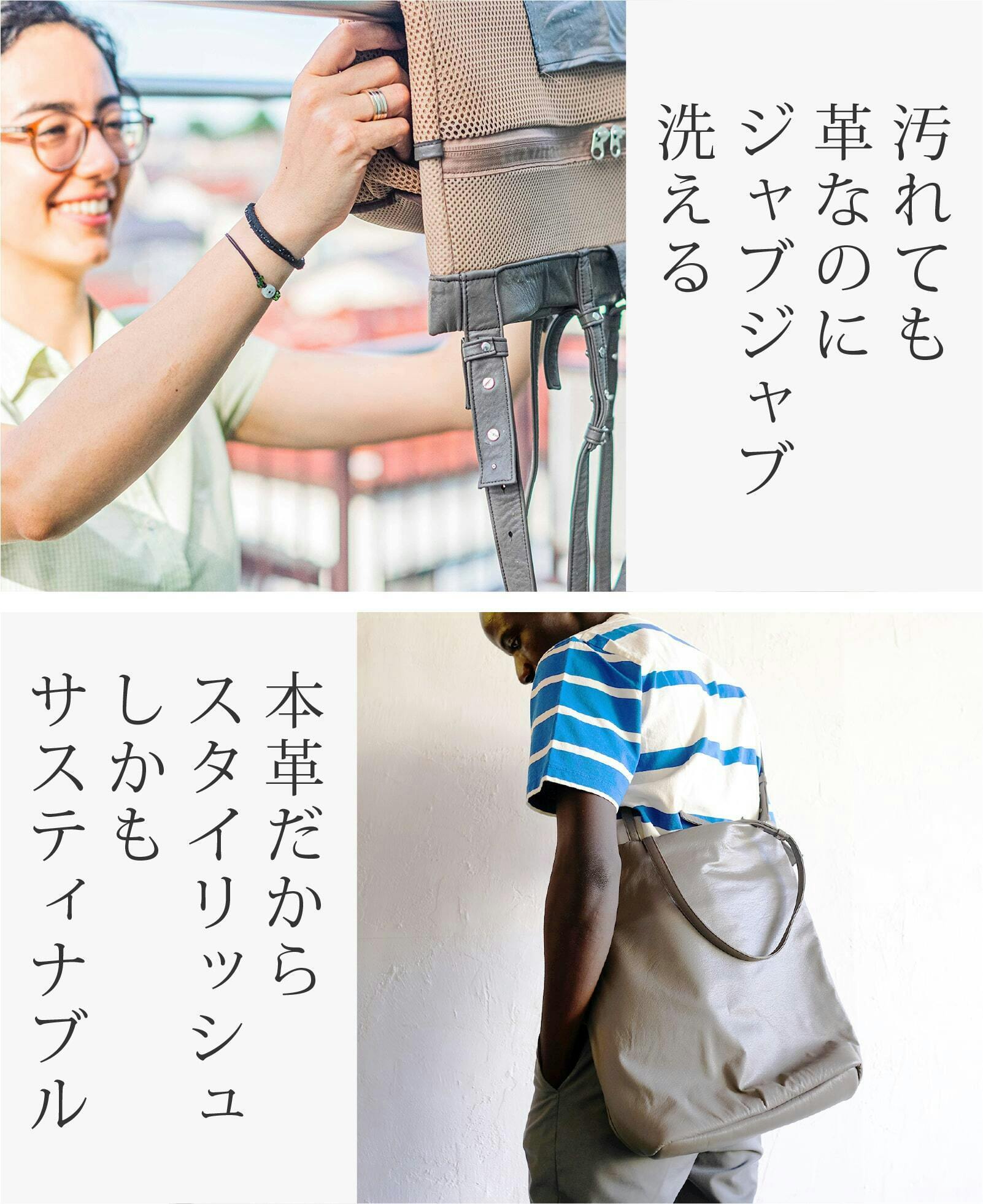 普通の革の半分の薄さで驚くほど軽い、汚れても革なのにジャブジャブ洗える。本革だからスタイリッシュしかもサスティナブル。